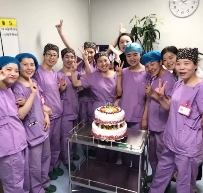 院領導為我院護士帶去節日祝福并為她們送上蛋糕!
