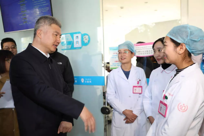 在婦產(chǎn)兒童分院口腔科,莊嚴(yán)書記見(jiàn)到了今年剛從內(nèi)地畢業(yè)回藏工作的大學(xué)生強(qiáng)巴卓嘎。強(qiáng)巴卓嘎告訴莊嚴(yán)書記,自己在內(nèi)地讀了5年口腔專業(yè),在阜康工作很開(kāi)心,收入也不錯(cuò),現(xiàn)在有越來(lái)越多的同學(xué)愿意到民營(yíng)企業(yè)工作。莊嚴(yán)書記勉勵(lì)強(qiáng)巴卓嘎認(rèn)真學(xué)習(xí)臨床技術(shù),要不斷學(xué)習(xí)深造,提高自己專業(yè)技能,無(wú)論在公立醫(yī)院還是民營(yíng)醫(yī)院工作,都是在為百姓的健康服務(wù)。