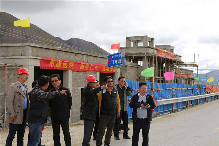 在鄉(xiāng)鎮(zhèn)道路旁邊的帳蓬里吃完自助餐后,吾金縣長(zhǎng)向晉源主席匯報(bào)了嘉黎縣的工作和夏瑪鄉(xiāng)衛(wèi)生院的建設(shè)情況。吾金縣長(zhǎng)說(shuō)在自治區(qū)黨委、政府和區(qū)工商聯(lián)發(fā)出"百企幫百村”的號(hào)召不久,阜康黨委書記王斌就帶著公司領(lǐng)導(dǎo)一起來(lái)夏瑪鄉(xiāng)實(shí)地考察,根據(jù)夏瑪鄉(xiāng)衛(wèi)生條件和阜康的醫(yī)藥行業(yè)優(yōu)勢(shì),在縣委、縣政府的建議下確定了以"醫(yī)療扶貧為主、產(chǎn)業(yè)扶貧為輔”的對(duì)口幫扶路線。決定由阜康投資500萬(wàn)元為夏瑪鄉(xiāng)修建一所現(xiàn)代化的衛(wèi)生院,同時(shí)另外出資100萬(wàn)元對(duì)嘉黎縣人民醫(yī)院進(jìn)行信息化改造升級(jí)。