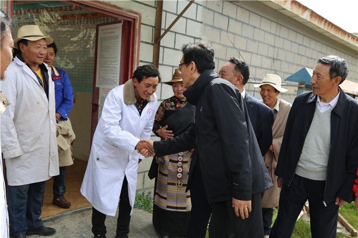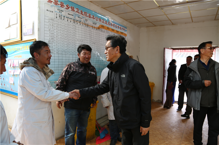 阿沛·晉源主席和施工人員一一握手慰問(wèn),囑咐他們?cè)谑┕み^(guò)程中一定注意安全!要把衛(wèi)生院建成標(biāo)桿衛(wèi)生院,造福夏瑪鄉(xiāng)農(nóng)牧民群眾!看完即將竣工的衛(wèi)生院他又來(lái)到老舊的衛(wèi)生院看望正在工作的醫(yī)護(hù)人員,與醫(yī)護(hù)人員和患者親切握手交談,囑咐他們一定多加學(xué)習(xí)和培訓(xùn),用心工作,搬到新的衛(wèi)生院后一定不要辜負(fù)阜康全體員工的期望!接著晉源主席也指示阜康要繼續(xù)幫助衛(wèi)生院,切實(shí)提高衛(wèi)生院工作人員醫(yī)療水平,將夏瑪鄉(xiāng)衛(wèi)生院打造成全縣乃至全區(qū)的標(biāo)桿衛(wèi)生院!