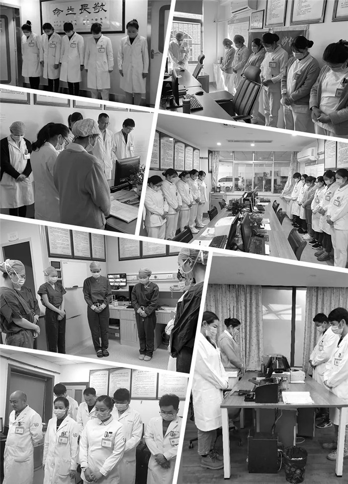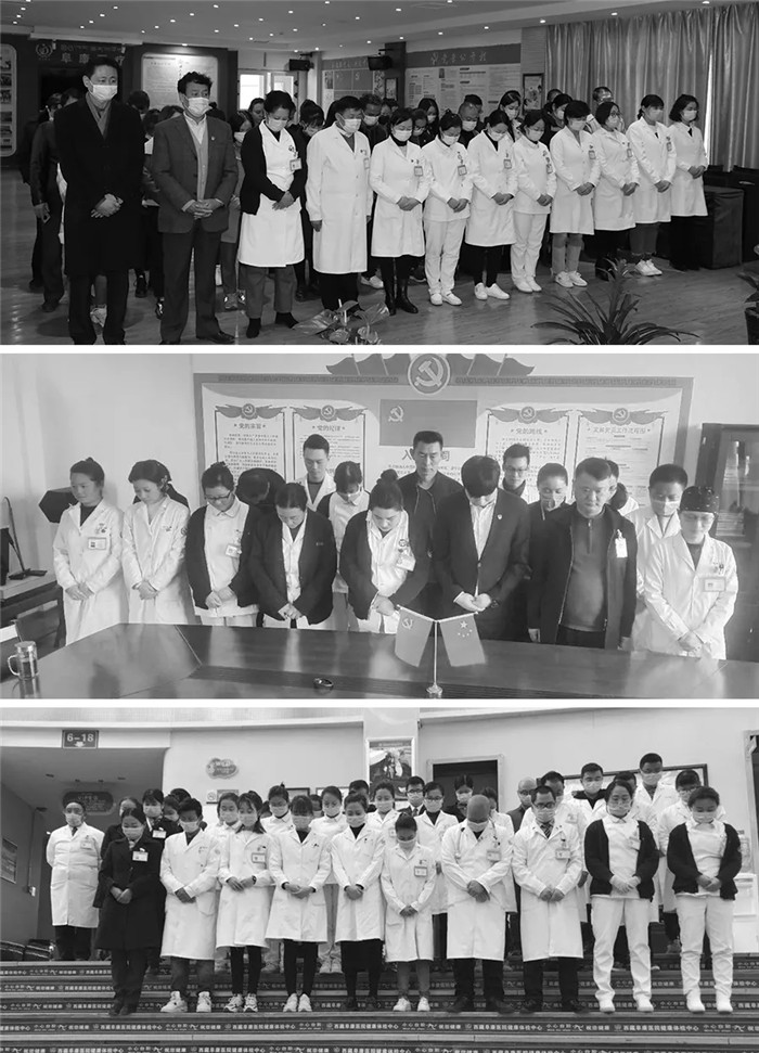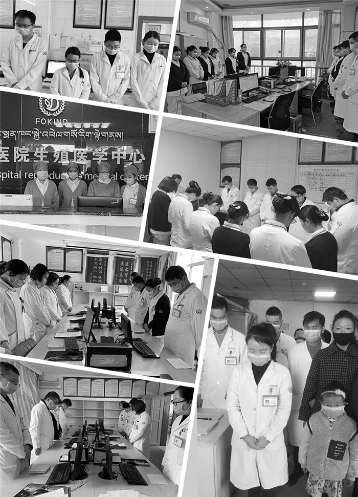 西藏阜康醫(yī)療全體黨員和醫(yī)務(wù)工作者及行政后勤人員默哀,追思抗疫犧牲的同胞!