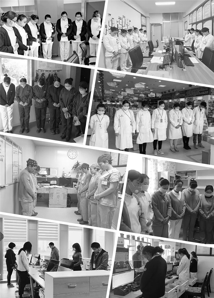 上午10點,隨著防空警報拉響,阜康醫(yī)療全體黨員和醫(yī)務(wù)工作者、行后人員分別在阜康醫(yī)院各院區(qū)、各科室、各藥房肅穆站立、低頭默哀。在這次疫情的特殊期間,有些人倒下了,但更多的人勇敢地扛起責(zé)任,在黨中央的堅強(qiáng)領(lǐng)導(dǎo)下和疫情頑強(qiáng)斗爭,如今我們已經(jīng)基本控制這場斗爭的局面,正在向全面勝利努力奮進(jìn)。