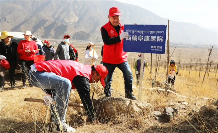 3月28日上午,為了響應拉薩市綠化委員會"積極參與義務植樹,共建綠色幸福拉薩”的號召,中共西藏阜康醫療股份有限公司委員會組織員工及員工家屬共78人前往堆龍德慶郊區義務植樹。