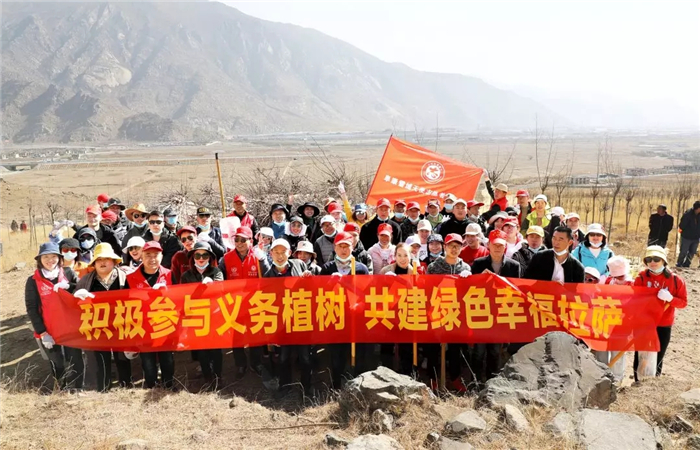 2021年3月28日,西藏阜康雪域天使志愿者服務隊開展義務植樹活動。