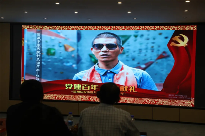 會議在雄壯的國歌聲中隆重召開。亞洲第一位登頂珠峰的盲人——阜康醫(yī)院針灸理療科張洪醫(yī)生從國外發(fā)來祝福視頻;會議播放了中國共產(chǎn)黨百年述職專題片,公司全體黨員一起學(xué)習(xí)了百年黨史。