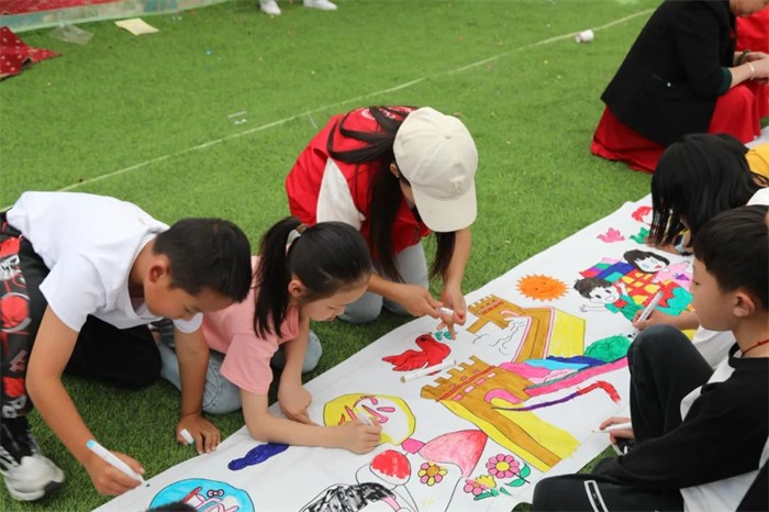 在祖國母親即將迎來75歲生日之際,我們以一幅長達十米的壯麗涂鴉,向偉大的祖國母親致以最深的敬意與最熱烈的祝福。天安門城樓、五星紅旗、天壇公園……我們用手中的畫筆,將對祖國的熱愛與祝福融入每一筆、每一劃之中。