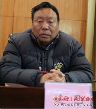 區總工會黨組成員、副主席邊巴宣讀《西藏自治區總工會關于表彰全區模范職工之家、全區模范職工小家、全區優秀工會工作者、全區優秀工會積極分子的決定》